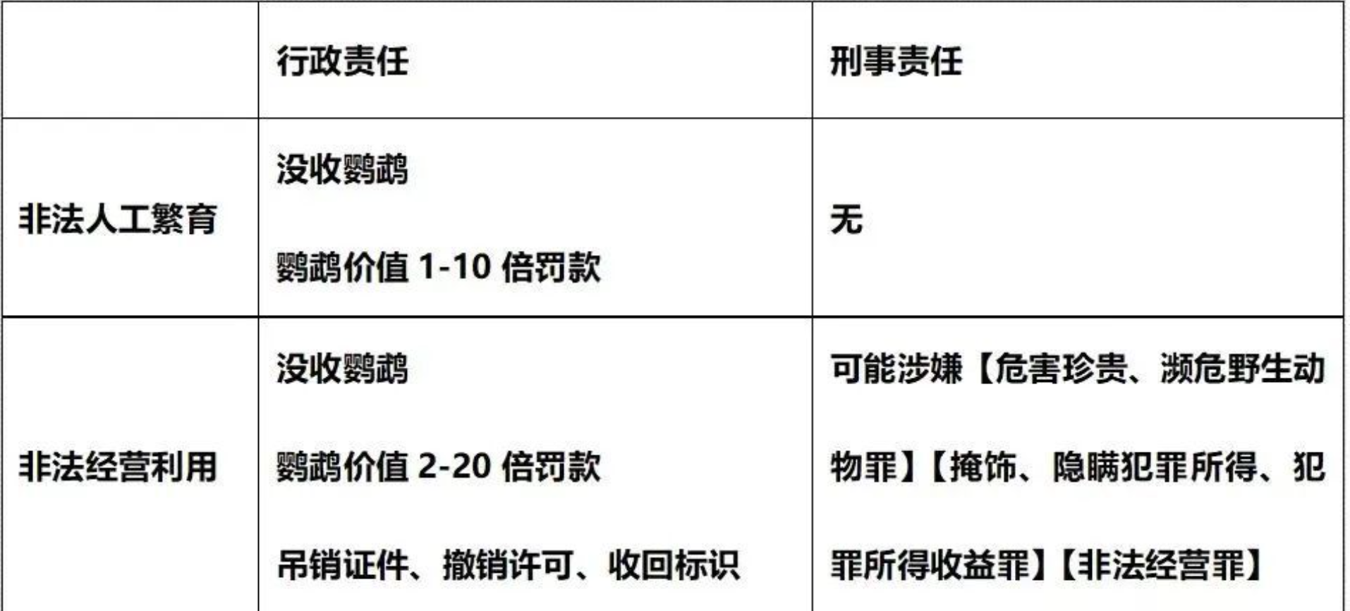 根据《中华人民共和国野生动物保护法》第五十一条第一款、第五十二条第一款规定,未取得人工繁育许可证繁育国家重点保护野生动物的,由县级以上人民政府野生动物保护主管部门没收野生动物及其制品,并处野生动物及其制品价值一倍以上十倍以下罚款;未经批准、未取得或者未按照规定使用专用标识,或者未持有、未附有人工繁育许可证、批准文件的副本或者专用标识出售、购买、利用、运输、携带、寄递国家重点保护野生动物的,由县级以上人民政府野生动物保护主管部门和市场监督管理部门按照职责分工没收野生动物及其制品和违法所得,责令关闭违法经营场所,并处野生动物及其制品价值二倍以上二十倍以下罚款;情节严重的,吊销人工繁育许可证、撤销批准文件、收回专用标识;构成犯罪的,依法追究刑事责任。